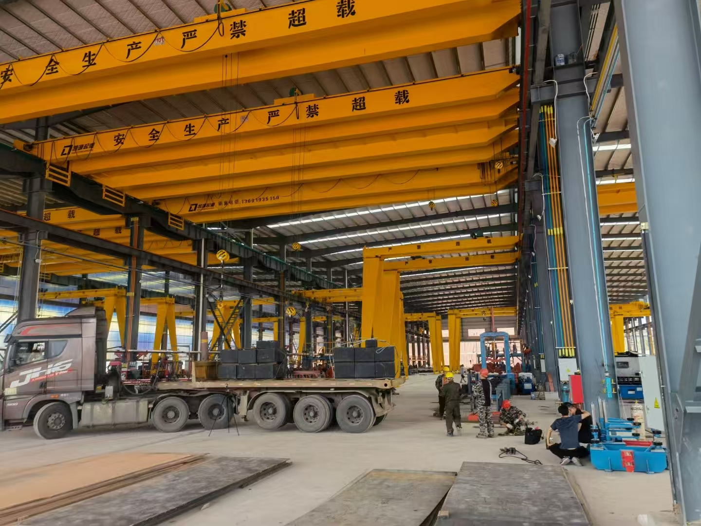鋁電解多功能機組的作用與結構,鋁電解多功能機組是電解鋁廠的重要設備之一。其承擔著吸出鋁水、打殼、下料、更換陽極、輔助提升陽極母線、運輸等諸多任務。鋁電解多功能機組的大車通常采用的是箱軌雙梁橋架結構。主梁與端梁之間通過銷軸來進行定位,并且采用高強度的螺栓進行連接,不但連接性能好而且裝配也更加的方便。運行采用的6輪支撐,雙邊單向驅動,采用的為三合一的減速器;此外具有懸掛緩沖裝置,車輪采用的是垂直輪加水平輪導向的方式。大車主要以外的主要組成部分有:包括運行機構與橋架、絕緣葫蘆以及各種供氣裝置等。另外為了運行更加安全還安裝了預防脫軌的裝置。鋁電解多功能機組是一種更加細分化的機械設備,在目前具有比較重要的應用,鋁電解多功能機組造價不菲,選擇好的廠家品牌是比較重要的。凱源起重專業生產優質鋁電解多功能機組,歡迎有需求的用戶同我們聯系。